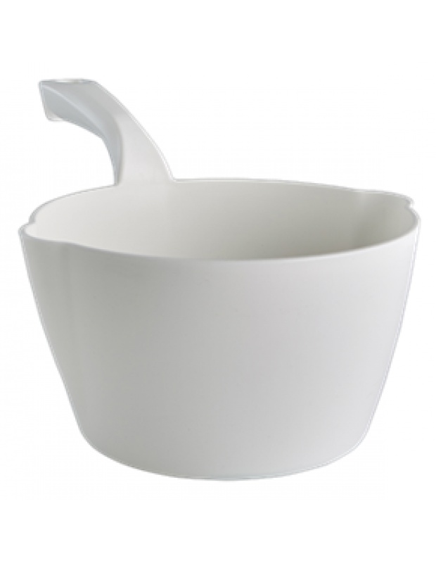 Ergonomicky tvarovaná kulatá naběračka. Lehká a odolná. Prohnutí pro vylévání je na obou stranách tak, aby umožnila bezpečné vylévání tekutin pravákům i levákům. Jednolitá konstrukce eliminuje místa, kde se mohou hromadit bakterie. Hladký povrch umožňuje velmi snadné čištění, ideální je pro oblasti zpracování a výroby potravin pro nabírání a přesun ingrediencí a tekutin. Uvnitř je opatřena měrkou. Materiál: polypropylen Objem: 2 l Výška x délka x šířka: 115 x 330 x 210 mm Max. teplota pro čištění (autokláv): 121 °C Max. teplota pro čištění (myčka): 93 °C Max. teplota použití (kontakt s potravinami): 100 °C Max. teplota použití (bez kontaktu s potravinami): 100 °C Min. teplota použití: -20 °C Použitelné pro rozsah pH: 2-10,5