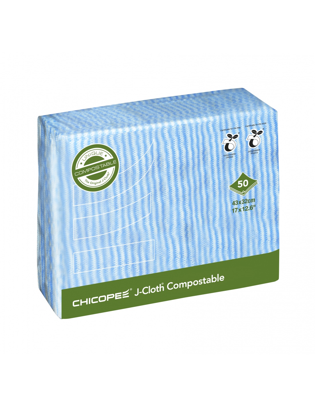 J-Cloth® Compostable je vyroben ze 100% přírodních biologicky rozložitelných vláken z certifikovaných zdrojů PEFC (Program pro autorizaci certifikace lesů). Je to první a jediný certifikovaný ubrousek pro kontakt s potravinami, který je biologicky rozložitelný a kompostovatelný podle normy DIN EN 13432:2000-12. Abychom poskytli udržitelnější řešení, je polybag také biologicky rozložitelný a kompostovatelný, a nový kartonový obal je vyrobený z materiálů certifikovaných FSC (Rada pro hospodaření v lesích). Jedinečný design a vlastnosti produktu J-Cloth® Biodegradable and Compostable je založený na nejznámějším úklidovém ubrousku, J-Cloth® Plus. Jeho jedinečná, otevřená, vlnitá textura umožňuje efektivní zachycení jakékoliv špíny a usnadňuje oplachování, což zajišťuje delší čerstvost. Foto ilustrační